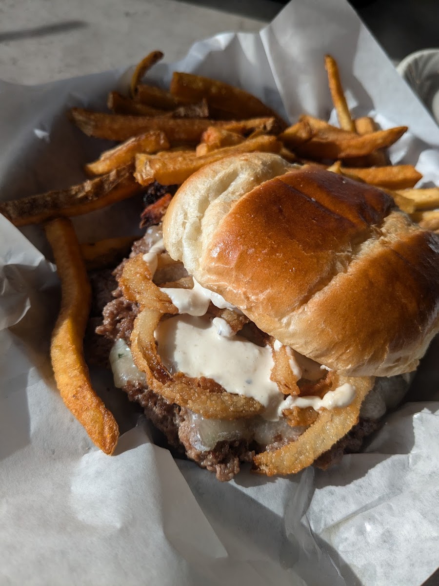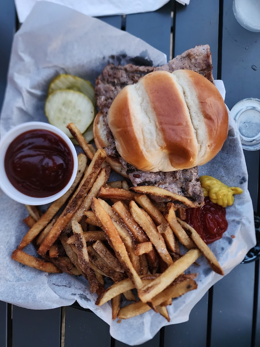 Nice locals bar with pub fare. The double smash burger was excellent, fries good but could have been hotter. Side salad fresh but plain (onion slice, cherry tomato, cucumber slice) Not a lot of flair to the large sirloin and mashed potatoes given the price ($45ish?)